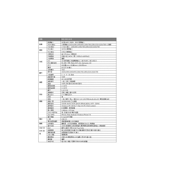支援AHD 720P、960H、D1 各式攝影機訊號