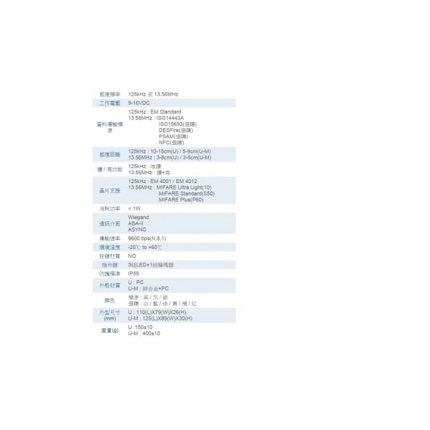 ◎ 讀頭可輸出唯根及ABA等訊號,因應控制器作調整另可選RS-232或RS-485輸出