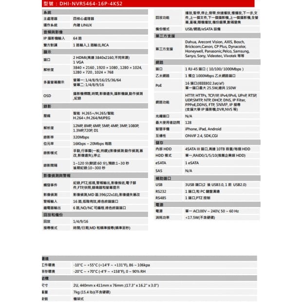 大華 DHI-NVR5464-16P-4KS2 64路1.5U 16PoE 4K H.265 Pro網路影像錄影機