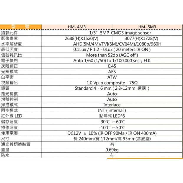 -影像解析度AHD 5MP/4MP, TVI/5MP, CVI/4MP。