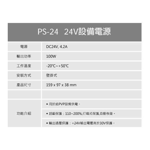 - 輸出過壓保護:+24V輸出電壓高於30V保護。