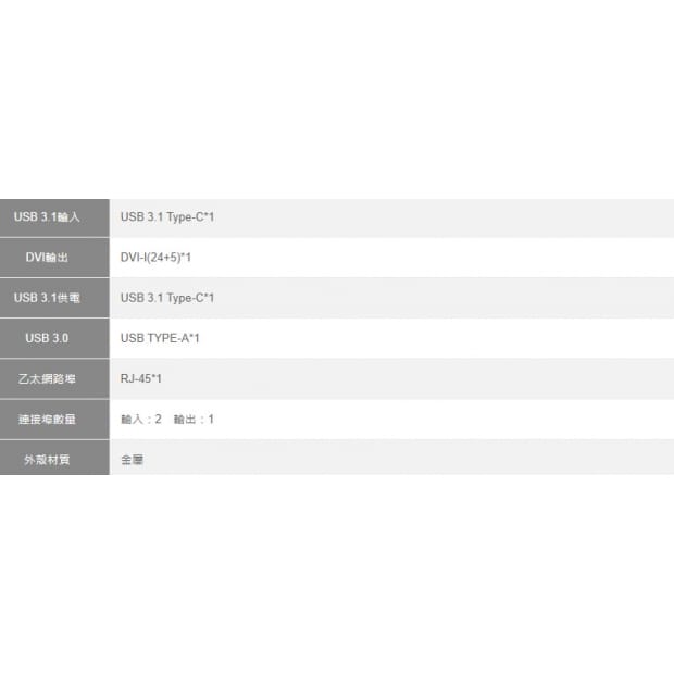 .此設備具一組USB3.0,一組DVI輸出,一組乙太網路埠,一組Type-C充電埠 .支援USB 3.0(5Gbps)超高速傳輸,向下相容USB 2.0 .USB 3.0支援同時傳輸數據與USB設備充電 .支援Macbook、chromebook pixel及其他USB3.1 Type-C等設備使用USB.C介面充電 .支援USB.C介面隨插即用、熱插拔 .DVI最高支援解析度1080P .支援DVI 12bit深色 .可將裝有USB Type C的電腦或平板電腦連接到路由器,以便將帶有USB Type-C介面的設備連接網絡