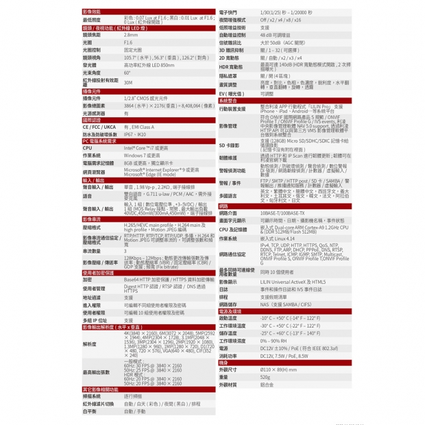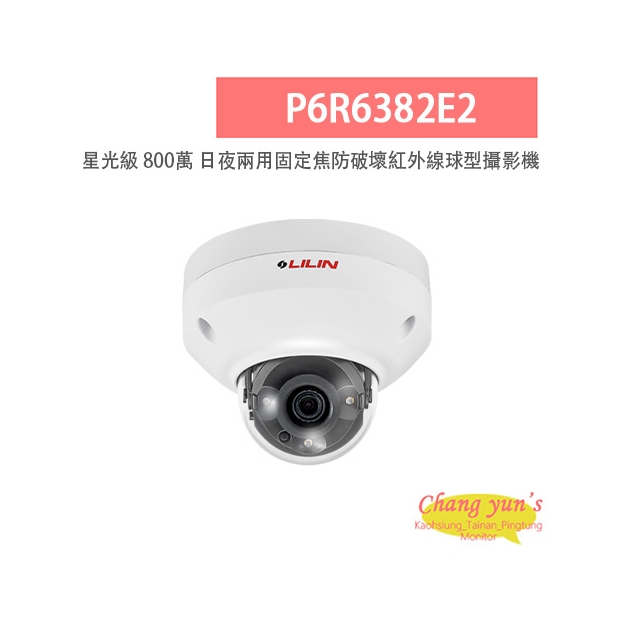 LILIN 利凌 P6R6382E2 800萬畫素 紅外線 星光級 日夜兩用 固定焦防破壞球型攝影機