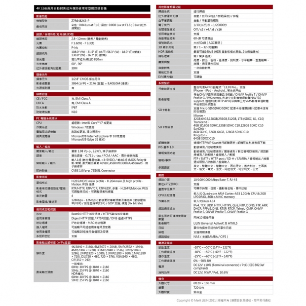 LILIN 利凌 Z7R6482X3-P 800萬畫素 紅外線 星光級 自動對焦 AI智慧網路攝影機