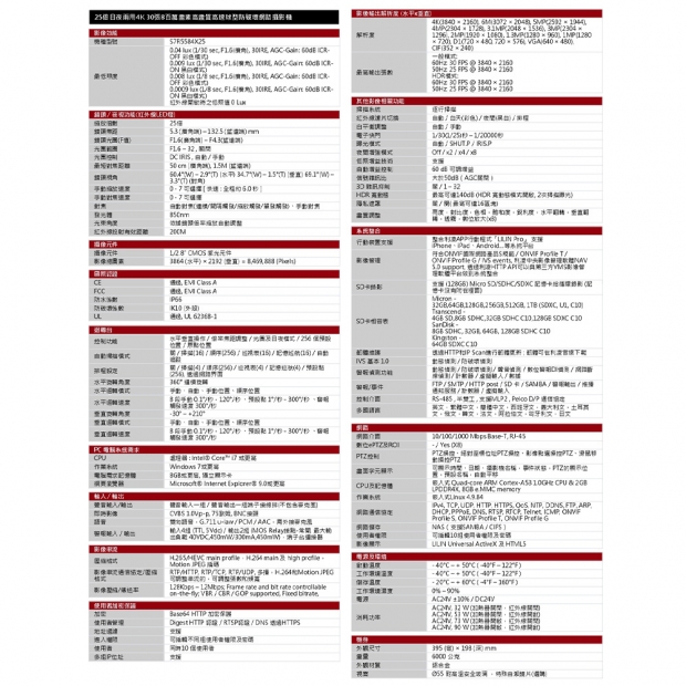 LILIN 利凌 S7R5584X25 800萬畫素 星光級 4K AI 智慧高速球型防破壞網路攝影機