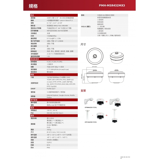 LILIN 利凌 PMH-MSR432MX3 3200萬畫素 紅外線 360° PTZ 多感測器全景攝影機
