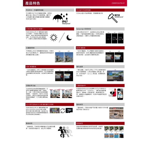 -防破壞偵測 / 聲⾳偵測 / 數位警報DI偵測 / 動態偵測 / 網路 斷線偵測