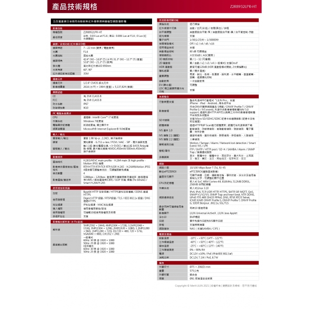 LILIN 利凌 Z2R8952LPR-HT 500萬畫素 紅外線 日夜兩用 自動對焦 車牌辨識槍型網路攝影機