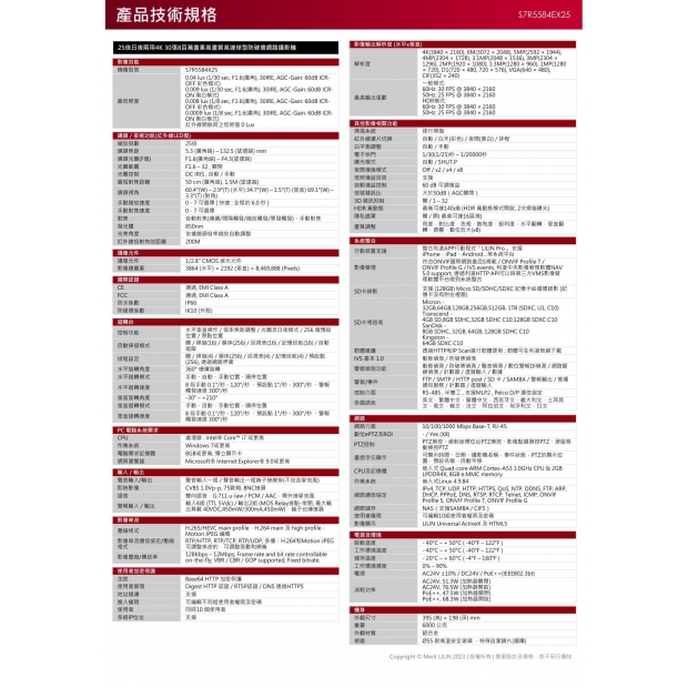 LILIN 利凌 S7R5584EX25 800萬畫素 紅外線 25倍/30倍 日夜兩用 高畫質高速球型防破壞網路攝影機