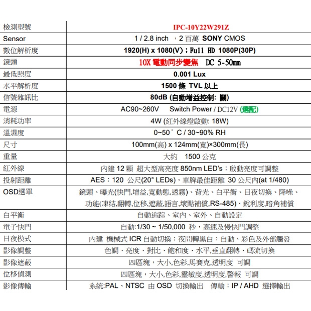 原具備IP / AHD,雙輸出 ; CVBS輸出 (可客製)