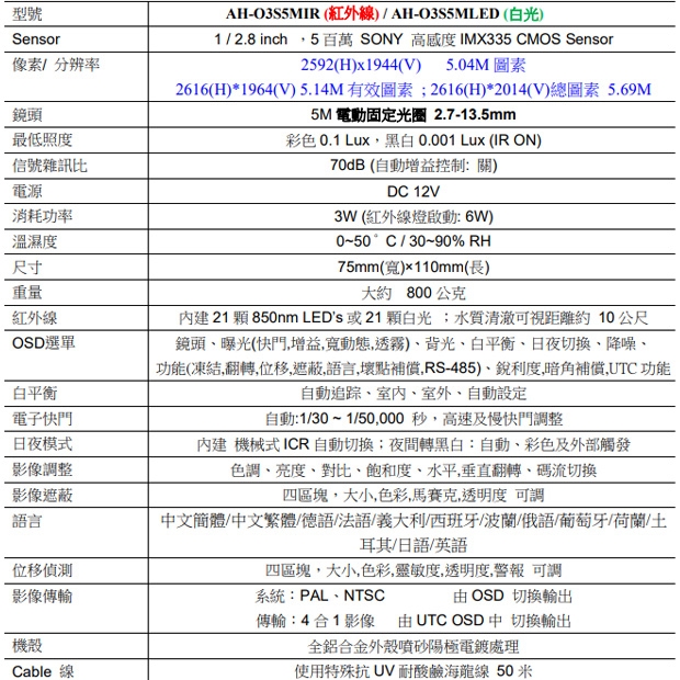 後端控制Zoom 及 Focus僅適用於AHD ; TVI須重灌微電腦( 訂製 )